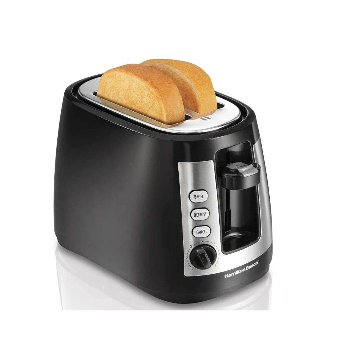 Your toast will stay warm without overtoasting with the Hamilton Beach® 2 slice toaster. The 2 extra-wide slots, cool-wall sides, and retractable cord help to make this toaster a great appliance. Defrost your bagels and have easy removal with the toast boost that lifts the food higher to grab.