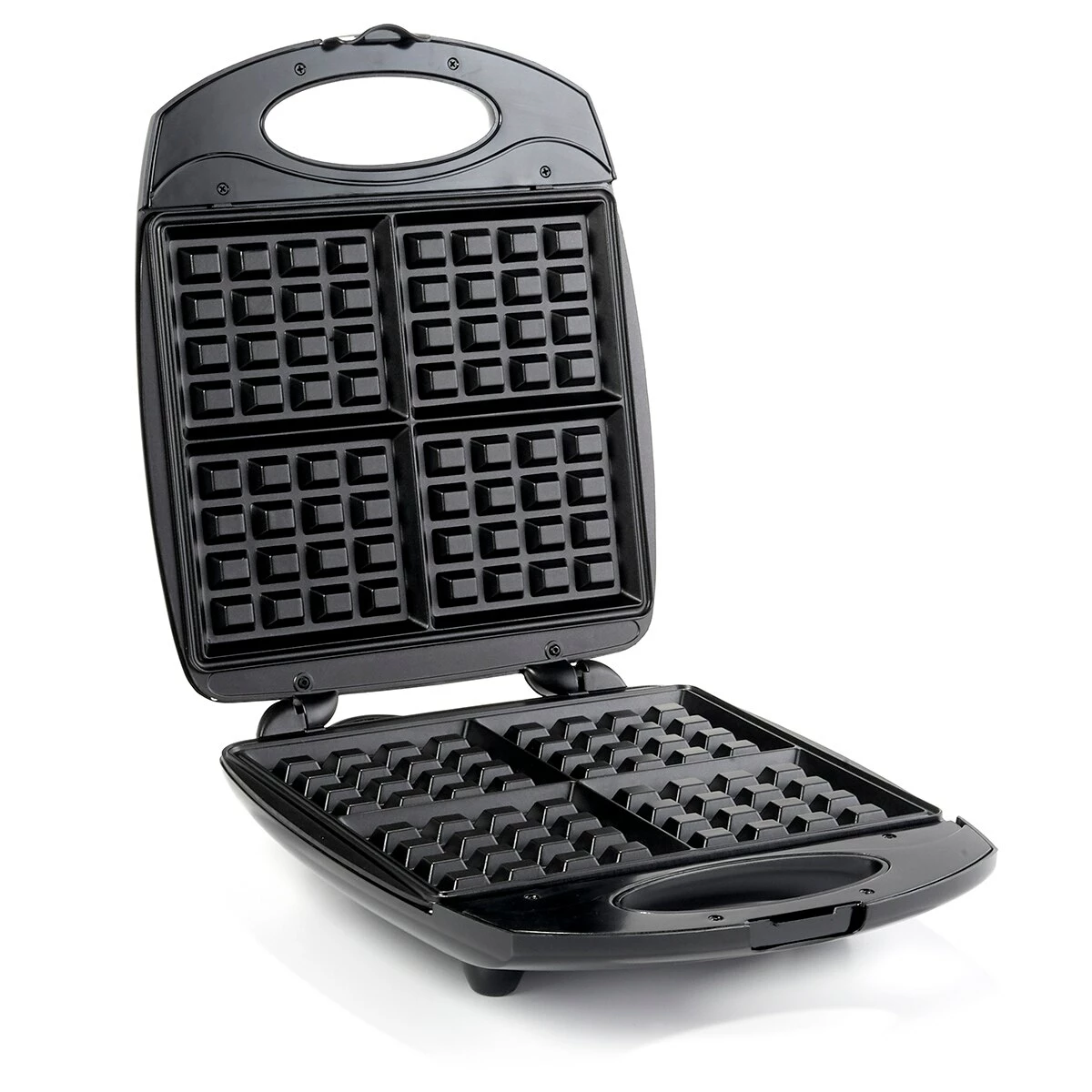 This Hamilton Beach® 4-slice Belgian style waffle maker will allow you to make enough for the whole family quick and easy. Making four waffles at the same time with the nonstick easy-clean grids will help your morning be more efficient and enjoyable. No need to track timing with the indicator lights. Compact and upright storage make this an easy choice.
