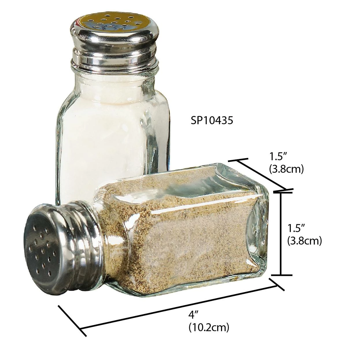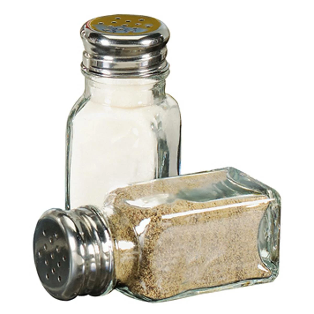 This Home Basics salt and pepper shaker set are essential for any tabletop setting. Shakers consist of elegant glass bases with stainless steel tops to easily dispense dry seasonings in a clean manner.