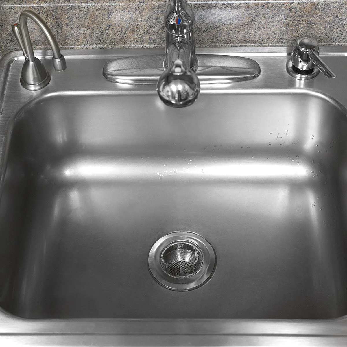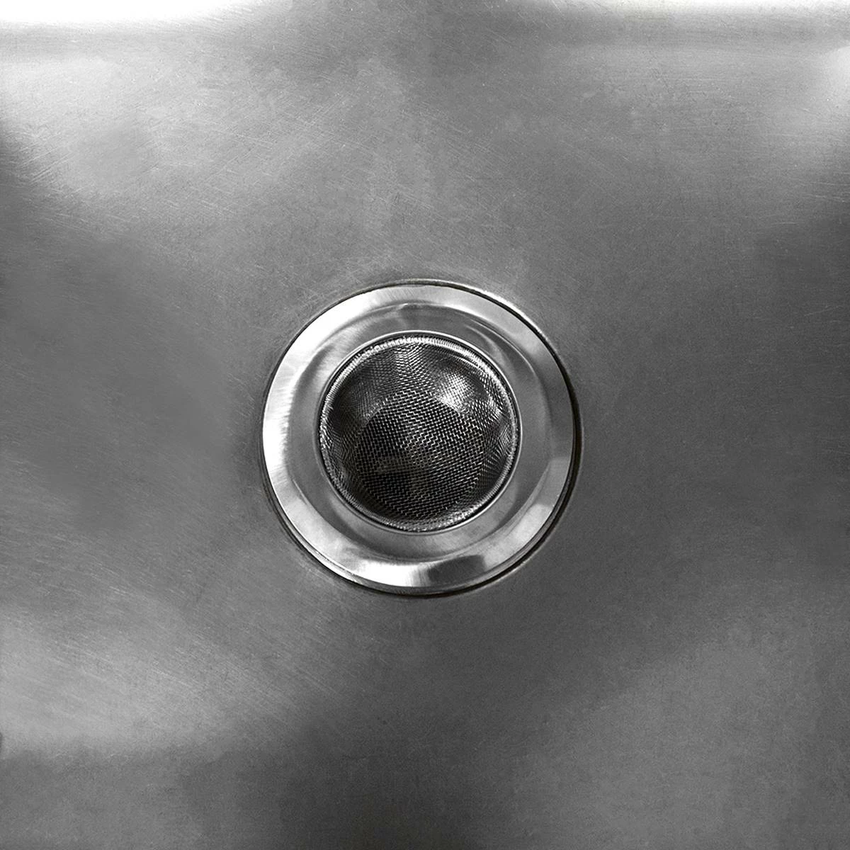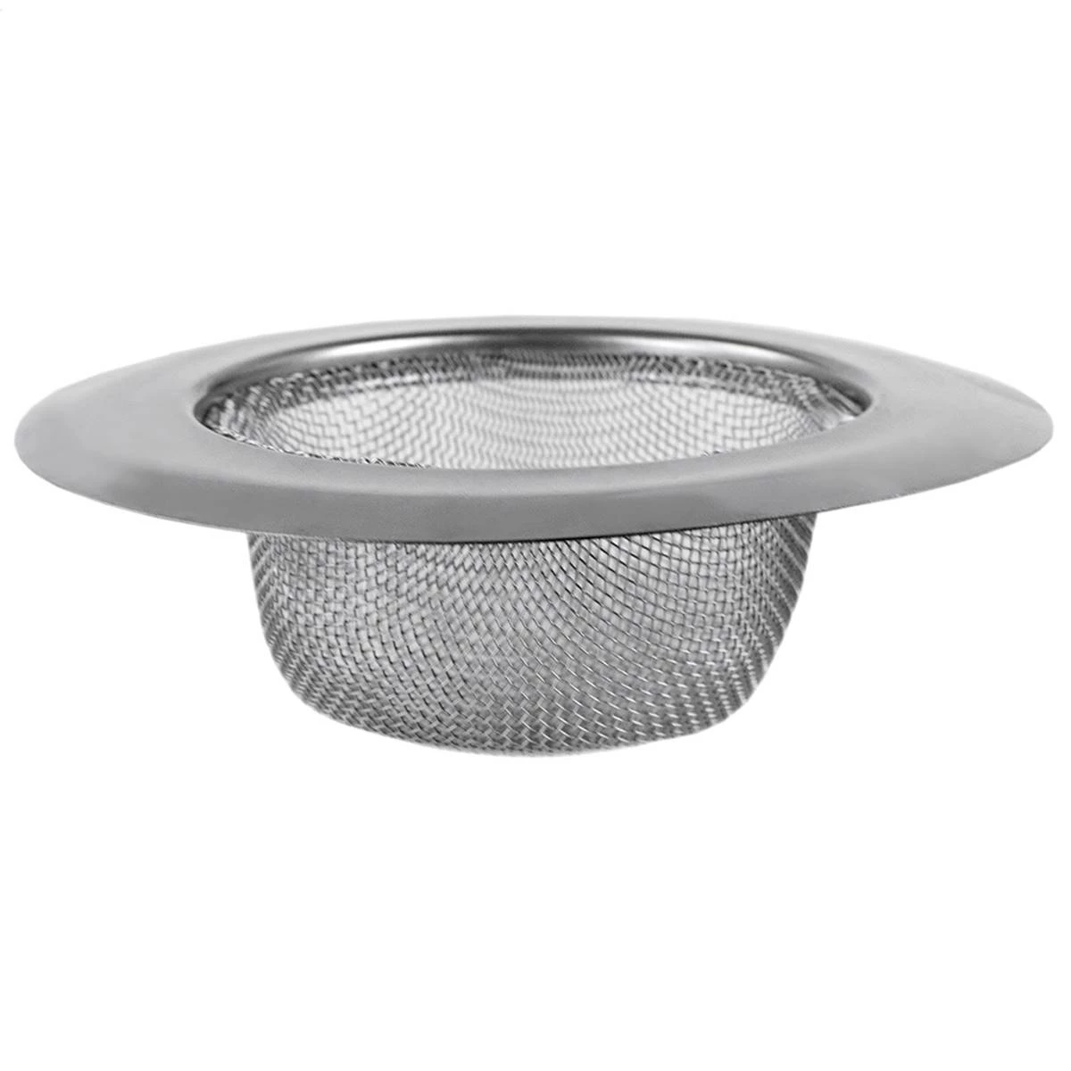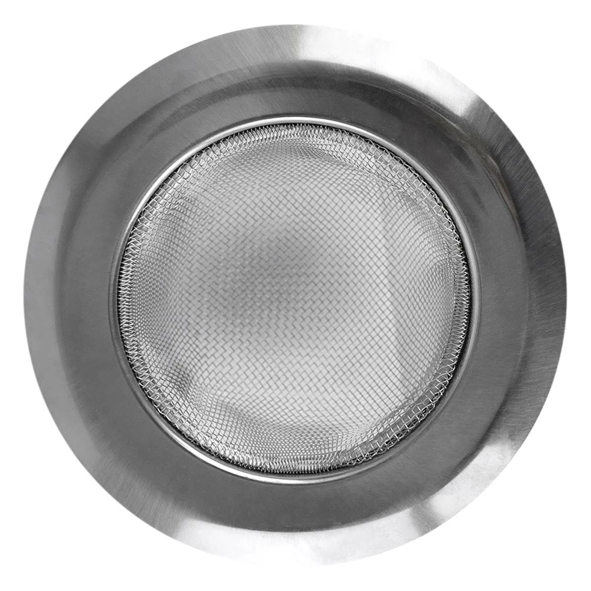 This Home Basics stainless steel sink strainer with a finely mesh steel basket traps debris and teeny tiny table scraps from clogging your pipes. The design is geared to handle most standard sink drains and garbage disposals. Its ergonomic design makes it easy to use. Simply lift it up by the center to easily dispose contents in a trash can or waste bin.