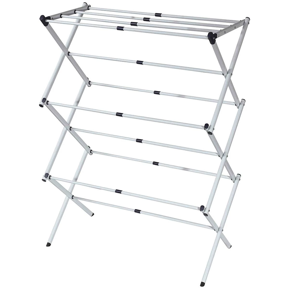 Hang and dry your clothes with this Home Basics clothes dryer. Made from heavy-duty contemporary enamel-coated steel with 10 rods for ample drying space. Collapsible when not in use for saving space.