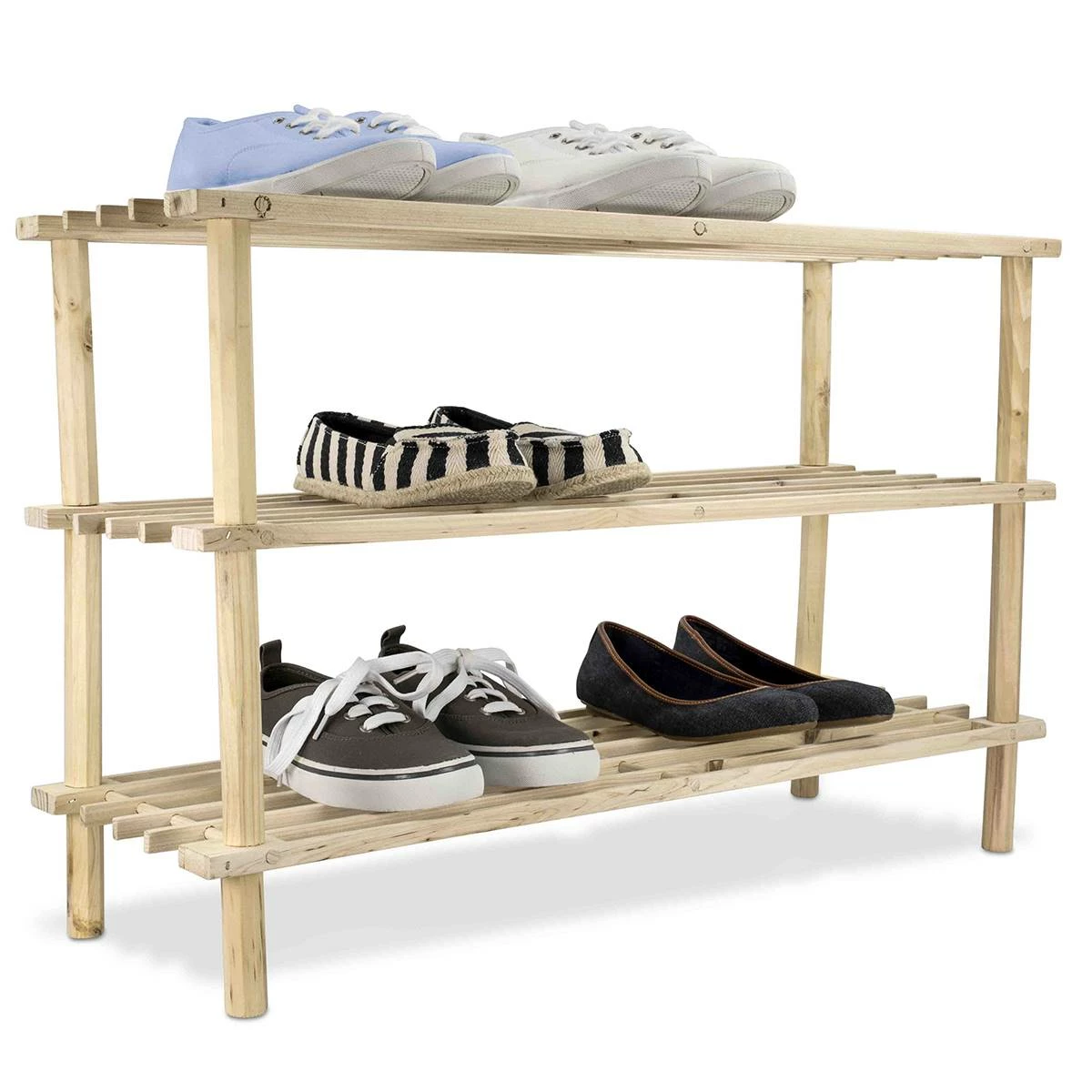 Store and organize all of your shoes and heels in this Home Basics wooden shoe rack. With 3 shelves maximize your storage space.