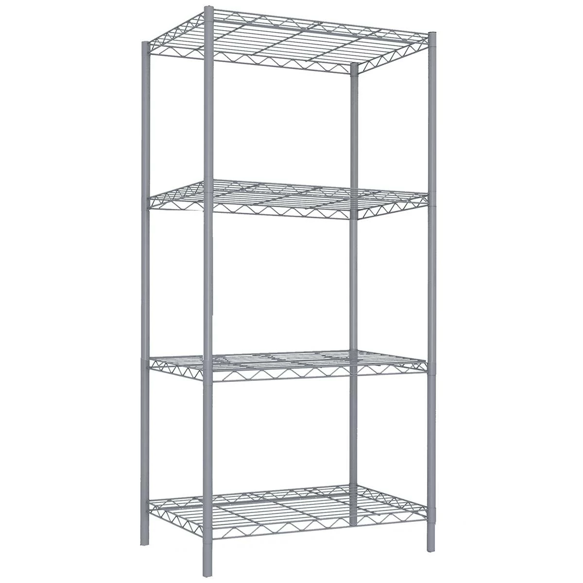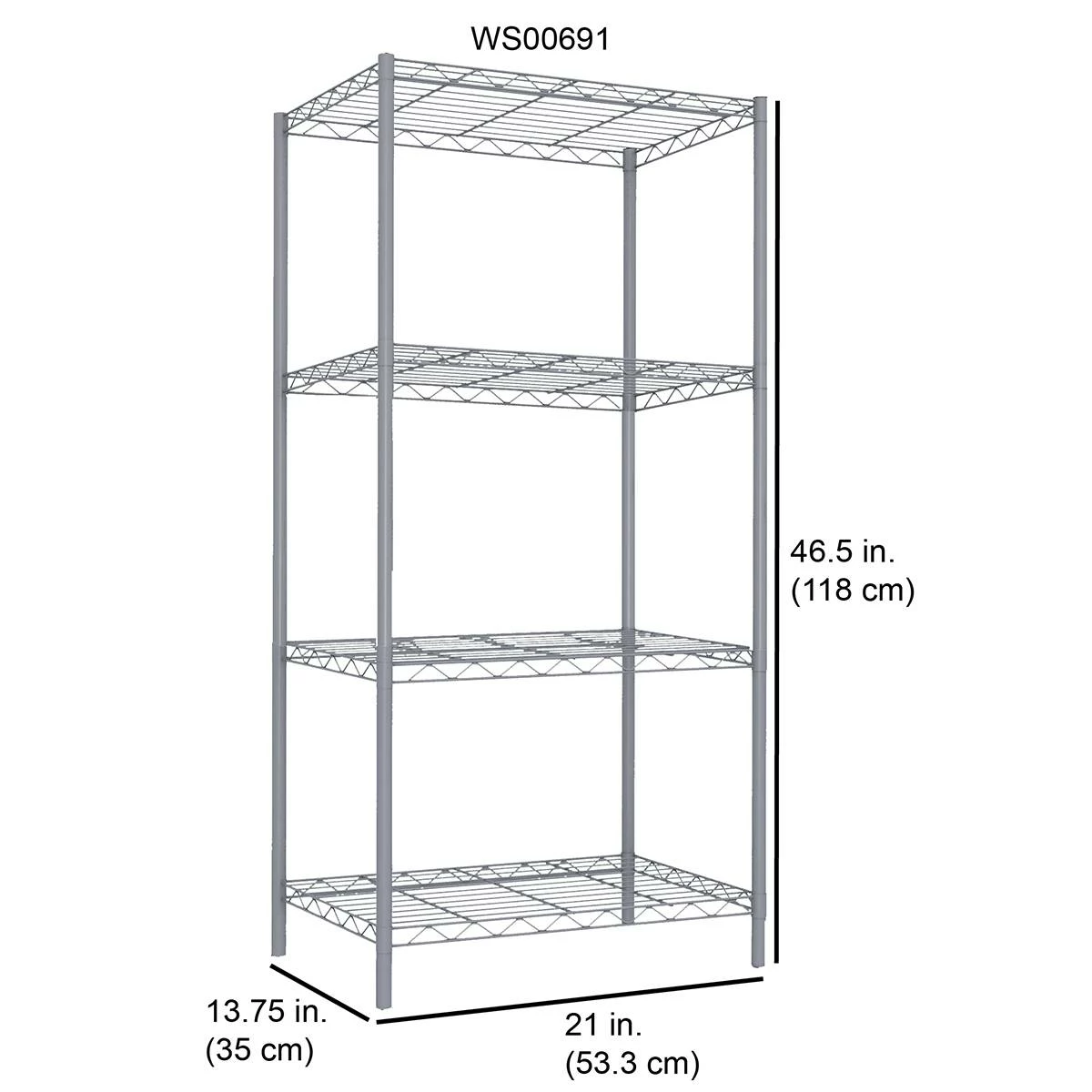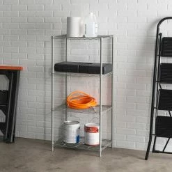This Home Basics shelving unit boasts an open, wired frame that is specifically designed to increase visibility and ventilation. The shelf is constructed of robust steel offering both contemporary charm and supreme durability. Each shelf can store up to 50 lbs when evenly distributed.