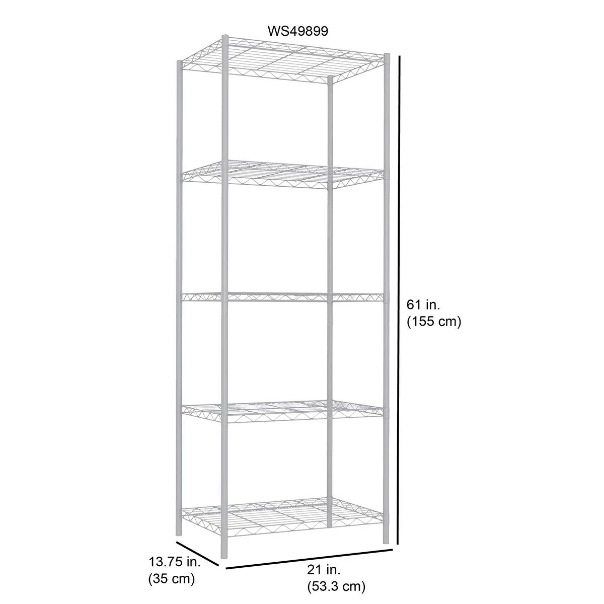 Store and organize your household essentials on this Home Basics wire shelf. Made from heavy-duty steel great for the garage, basement, pantry, anywhere in the house. Holds 45 pounds per shelf.