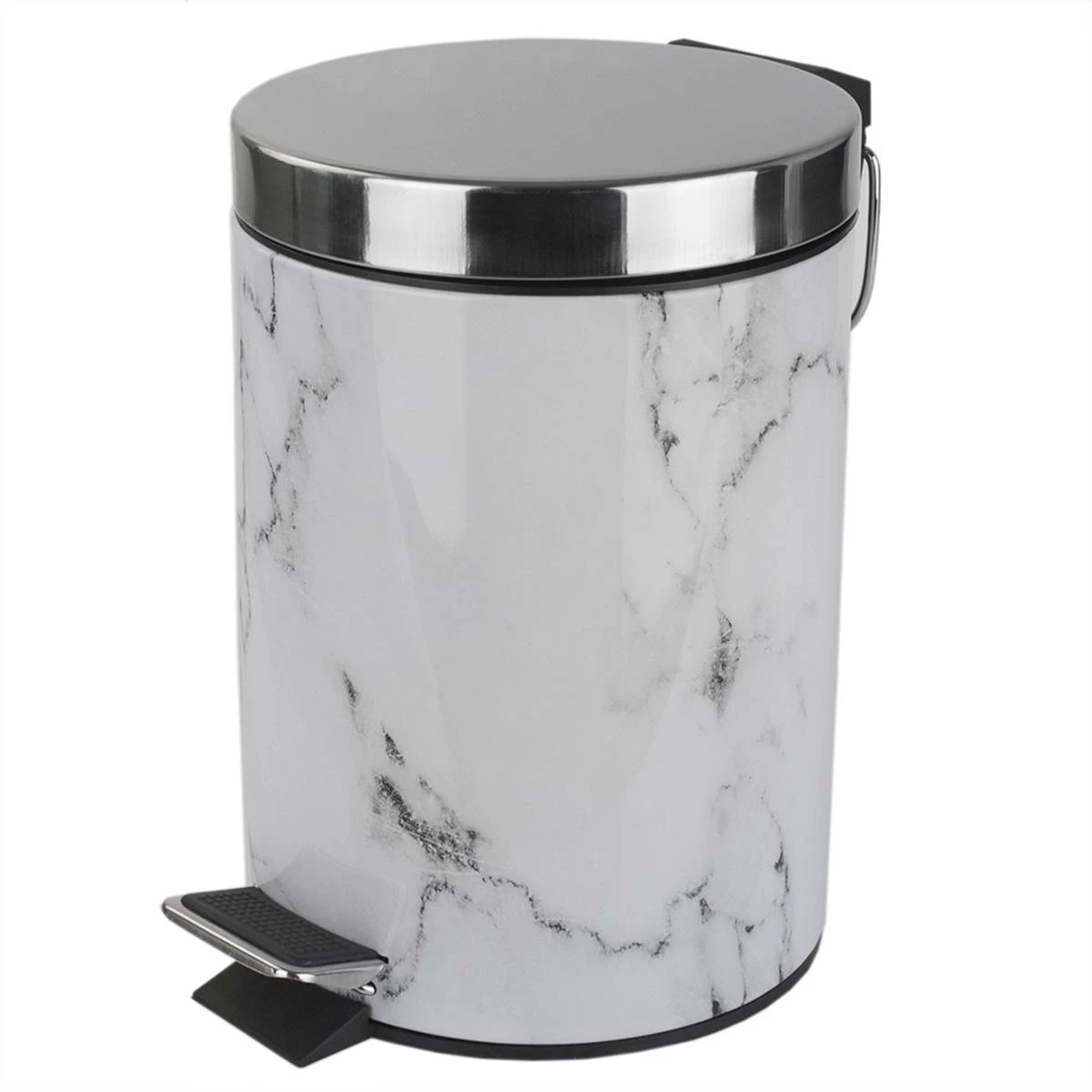 The Home Basics faux marble waste bin is a durable bathroom accessory that doubles as an artistic display piece. A step activated lid adds convenience, by keep garbage and its unsightly odors solely within the confines of the interior plastic bucket. The non-skid base also prevents the bin from slipping or tipping over.