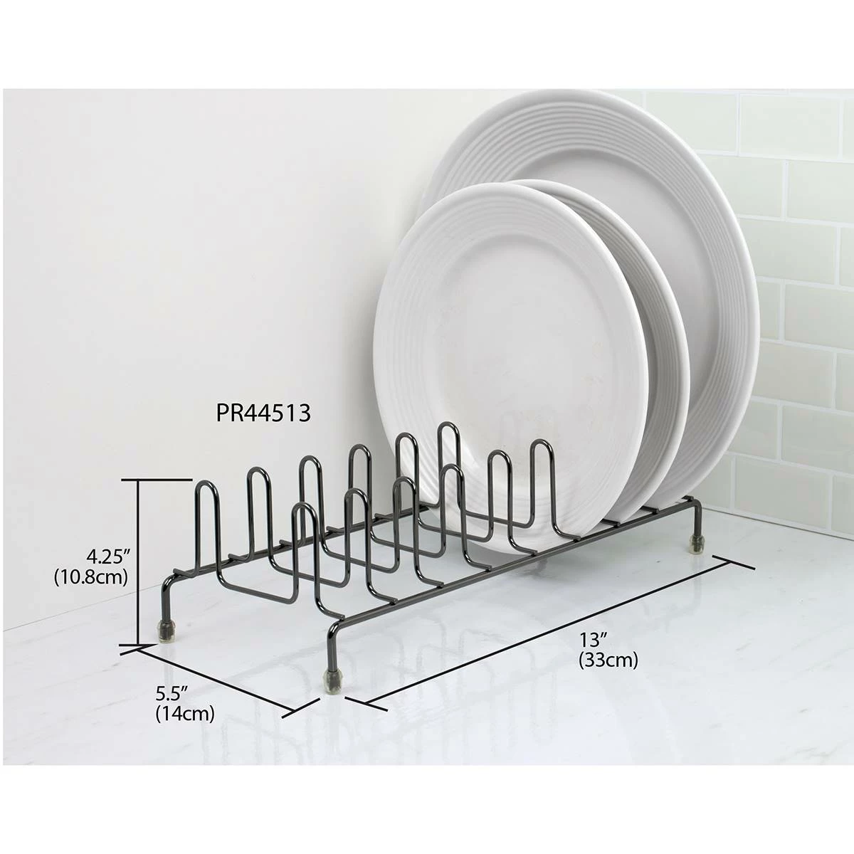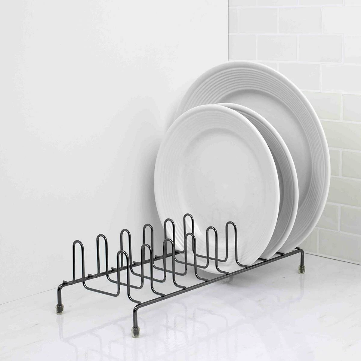 Store and organize all your plates in one place with this Home Basics plate rack. Made from a black onyx steel finish with eight divided compartments for all different shapes and sizes of plates. With a small profile to keep the rack out of the way but always within reach.