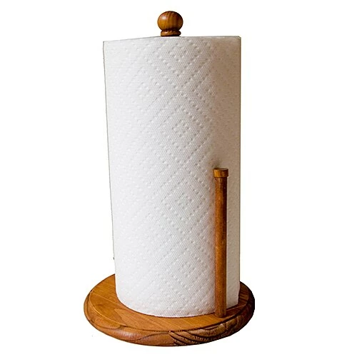 The Home Basics pine paper towel holder stores and keeps your paper towels close at hand. Made with all natural pine wood. The side bar makes it easy to rip the paper.