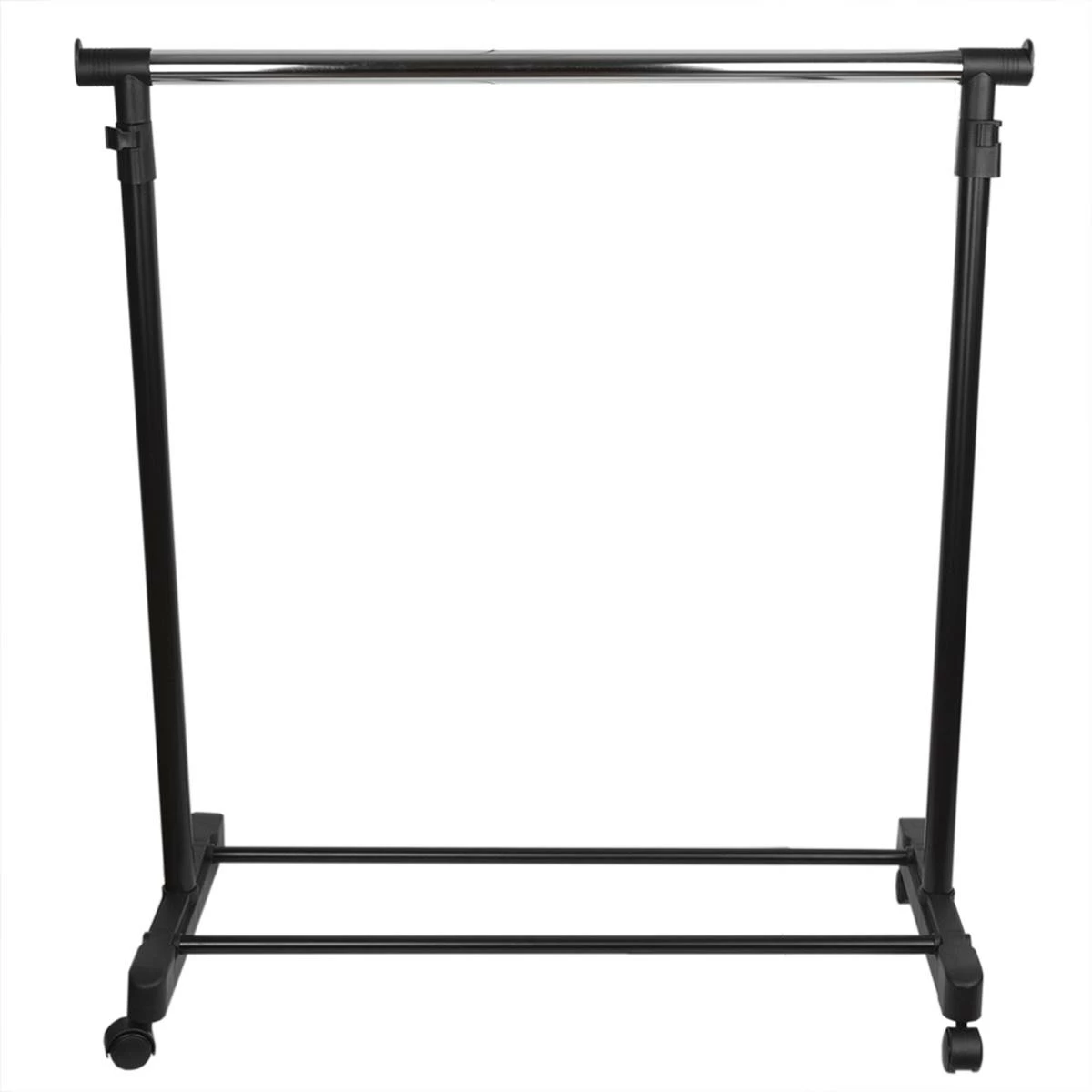 Enjoy having additional and portable storage space for all your clothes with this Home Basics free-standing garment rack. Made of chrome, the sturdy metal frame conveniently holds multiple suits, jackets, shirts, dresses, and more, while its smooth-rolling wheels make it easy to glide effortlessly from room to room.
