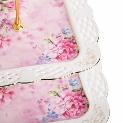 Home-Essentials Kitchen & Dining Home Essentials 3-Tier Pierced Pink Rose Square Server
