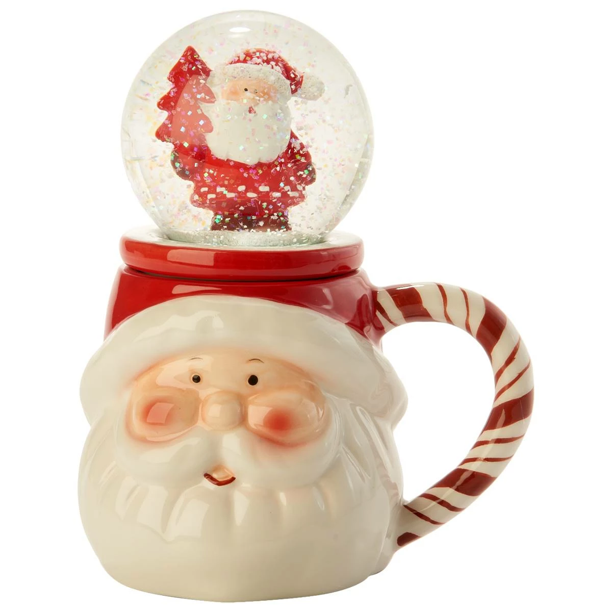 This adorable Home Essentials 17-ounce Santa snow globe mug is a great addition to any holiday table. It features a built-in snow globe lid that creates a magical display in your kitchen or dining room or when you are drinking your favorite hot beverage in it. Made from durable ceramic, the mug is good for both hot and cold drinks.