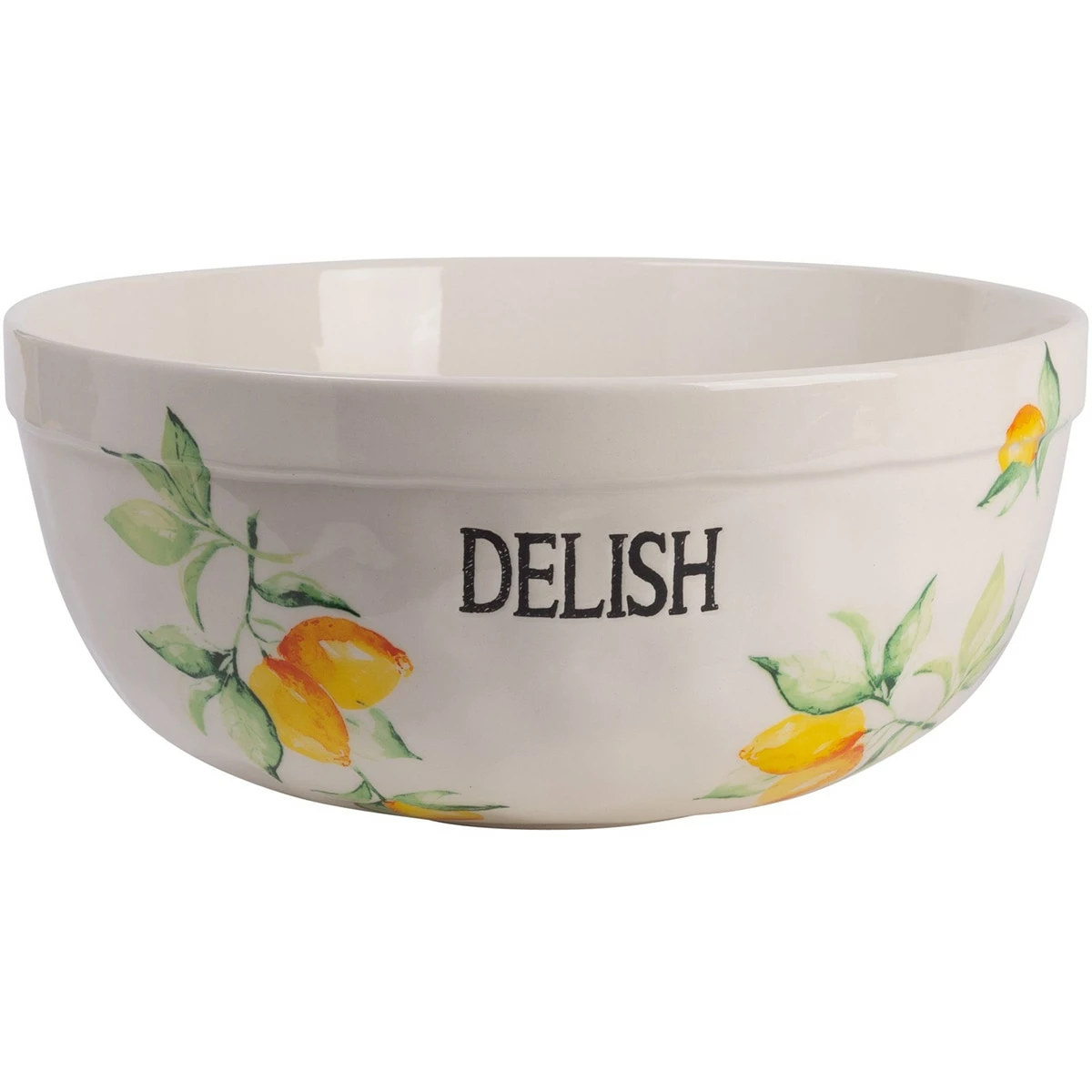 Freshen up your kitchen decor with the Home Essentials 33 ounce lemon garden organic mixing bowl. The bright yellow design adds a vibrant, eye-catching element to this bowl.