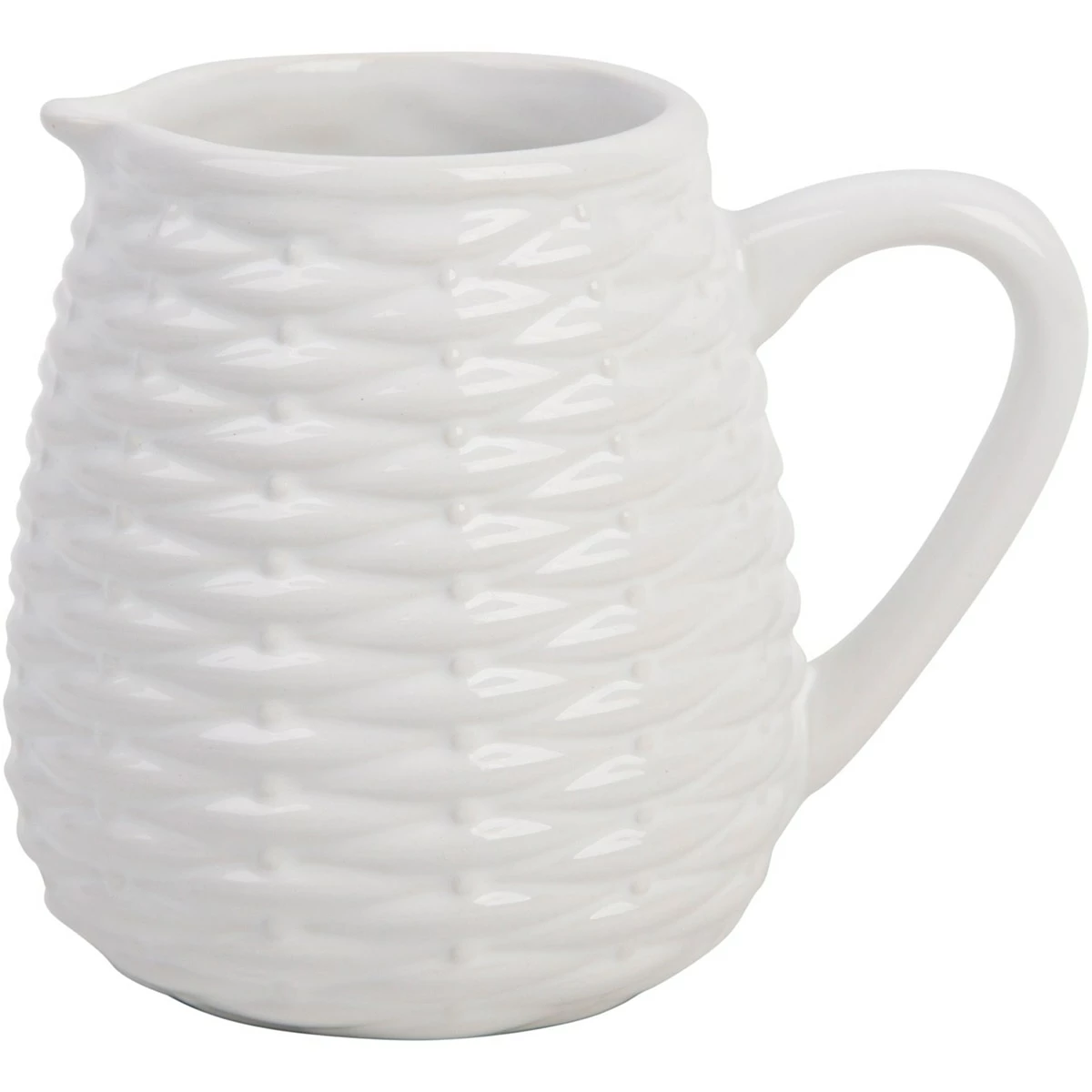 This Home Essentials 4-inch white embossed weave creamer jug provides a modern addition to your tableware.When ordering multiples of this item, additional shipping fees may be charged. Before levying such charge, we will contact you with the proposed amount of the charge. If you do not want to accept the surcharge, we will cancel your order without any penalty to you.