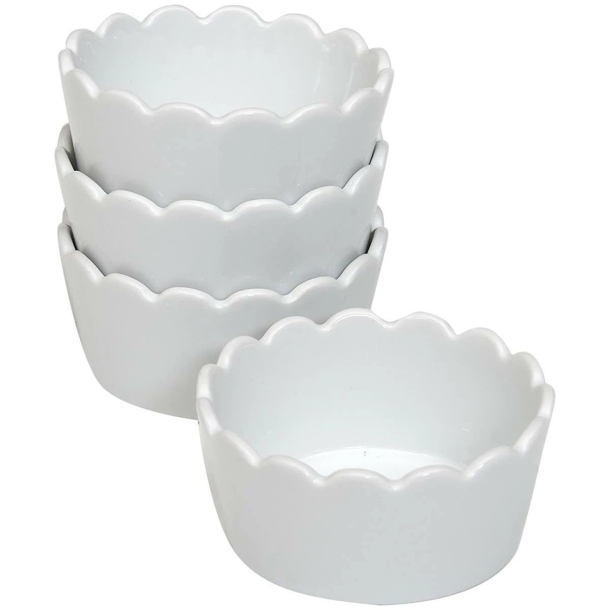 Baking is a breeze when it’s done in this set of four Home Essentials 4-ounce scallop edge ramekins. The ruffled edges on the porcelain ramekins add a touch of whimsy to your kitchen.