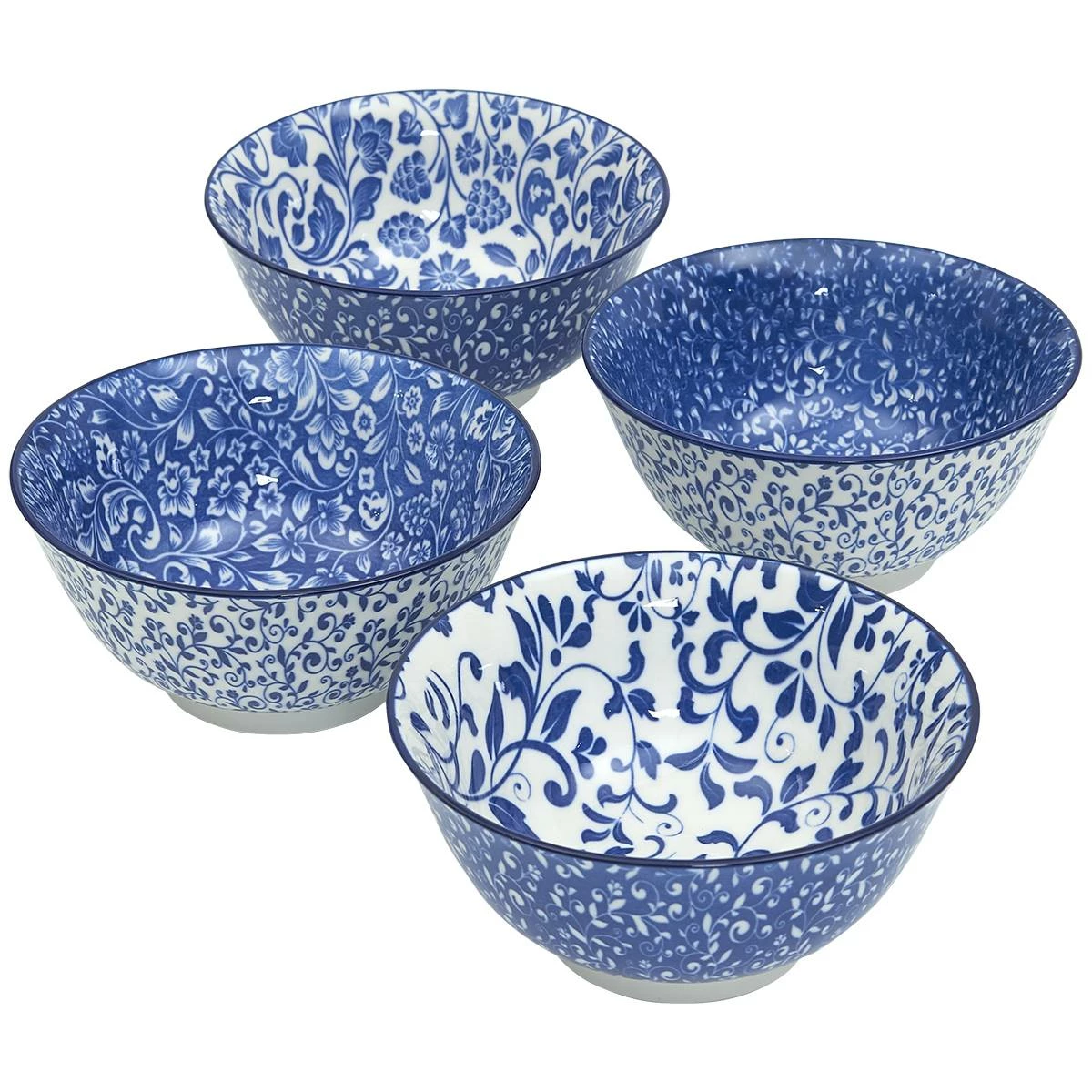 The Home Essentials 6in. Blue/White Print Bowls allow you to create a stylish table setting when mixed with a solid dish set. These versatile bowls can be used for dessert, fruit, rice, or prep. Each bowl has a unique pattern