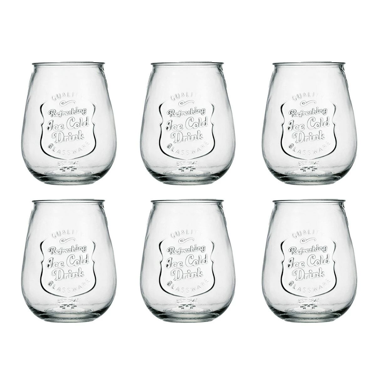 Toast in classic fashion with this set of six Home Essentials retroware ice cold shot glasses. They each feature a traditional design on a smaller scale with an embossed “Ice Cold Drink” text. A wonderful addition to your barware collection.
