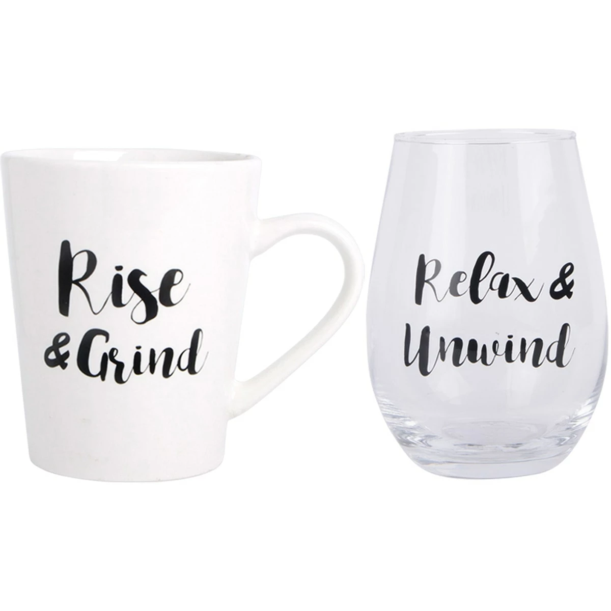 Home-Essentials Kitchen & Dining Home Essentials Rise & Grind/Relax & Unwind Mug And Glass