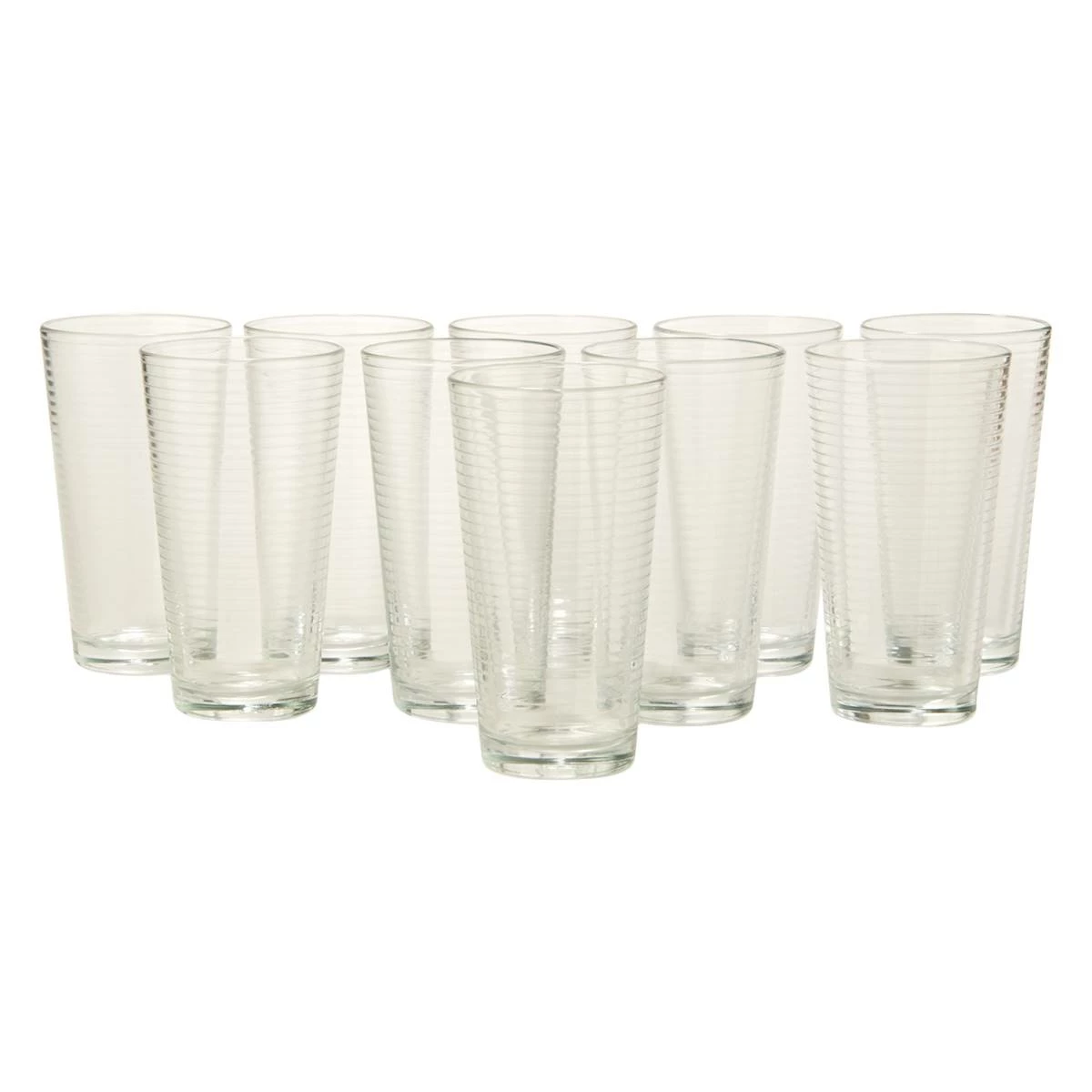 Whether you are drinking orange juice at breakfast or lemonade at lunch; the Home Essentials set of 10 solar high ball glasses is the perfect fit. The rimmed edges add a classic and stylish addition to your table.